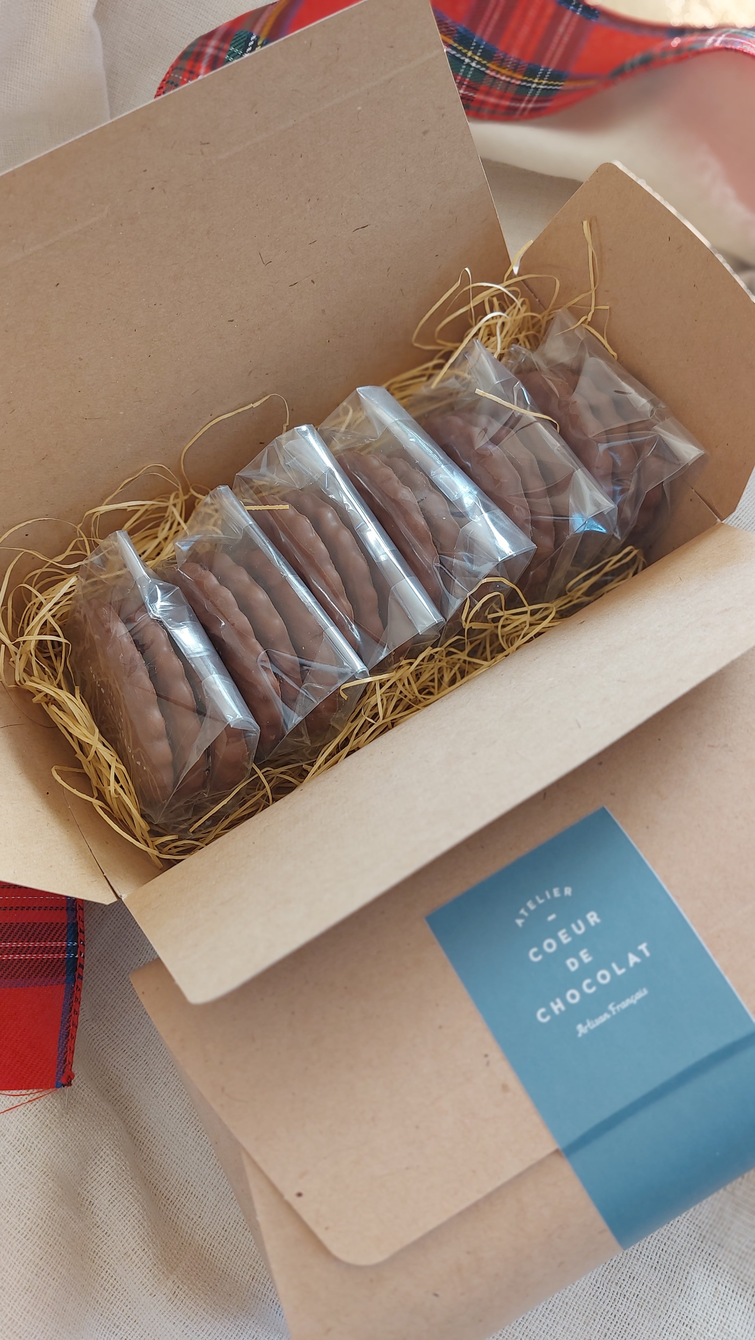 冬春限定のビスキュイ ノアは、ショコラの時期にのみ製作される焼き菓子です。 当店の焼き菓子の中でも一番人気の商品で、その人気の秘密は何と言ってもその味と香り。 サクサクの生地にクルミ、レモン、シナモンを加え、ミルクチョコでコーティングしました。 冬春限定のため、今の時期しかお楽しみいただけません。ぜひこの季節にしか味わえない特別なビスキュイをお試しください。