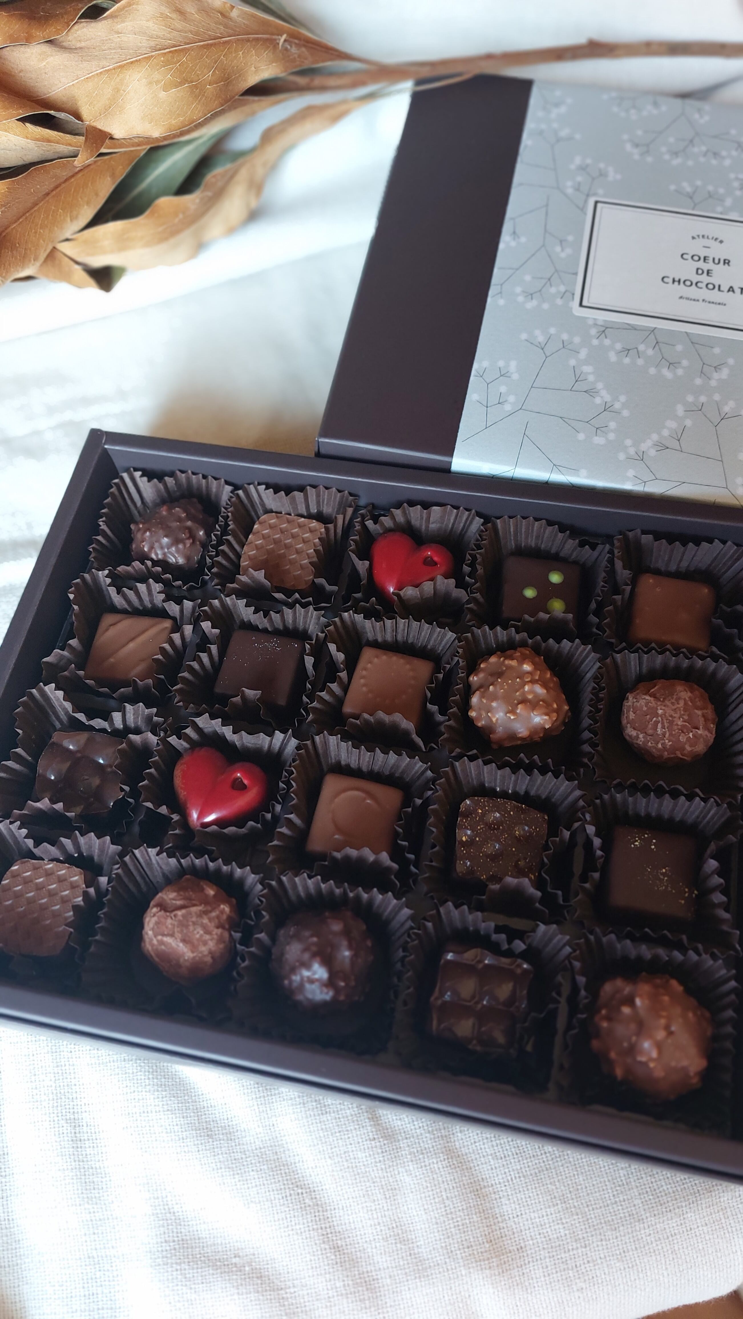 【内容】 □ジャンドゥーヤ ノアゼット(焙煎したナッツとミルクチョコの自家製ジャンドゥーヤ) □パット・ダマンド オレンジ(自家製オレンジ味のアーモンドペースト) □抹茶(抹茶のホワイトチョコのガナッシュ) □トリュフコアントロー(洋酒コアントローのトリュフ)X2 □アールグレイ(紅茶が香るビターチョコのガナッシュ)X2 □ピスタチオ(ホワイトチョコベースのピスタチオのガナッシュ)X2 □パレオー(シンプルなビターチョコのガナッシュ) □ブルトン(自家製プラリネとパリッとしたクレープ入り)X2 □フランボワーズ(ラズベリーのジュレとガナッシュ)X2 □ロシェ レ(ザクザクのアーモンドとヘーゼルナッツのミルクトリュフ)X2 □ロシェ ノア(ザクザクのアーモンドとヘーゼルナッツのビタートリュフ)X2 □キャラメル (ミルクチョコのキャラメルガナッシュ) □ゆず(ゆずのガナッシュ) □バナナ パッション(バナナとパッションフルーツのガナッシュ) 【原材料名】 ビターチョコレート(フランス製造)、ミルクチョコレート、ホワイトチョコレート、 ヘーゼルナッツ、アーモンド、砂糖、生クリーム、小麦粉、バター、 ラズベリー、バナナ、パッションフルーツ、ピスタチオ、オレンジ、コアントロー、 アールグレイ、オレンジエッセンス、柚子、バニラ、塩