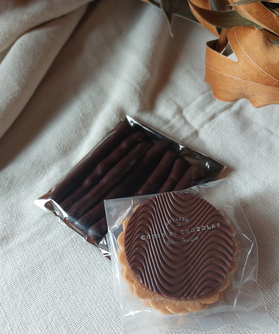 【内容】 □オランジェット(オレンジの皮のコンフィにビターチョコをコーティング) □プチ エコリエ(バニラのビスキュイにミルクチョコを重ねてます) 【原材料名】 ビターチョコレート(フランス製造)、ミルクチョコレート、オレンジ、 小麦粉、砂糖、バター、牛乳、バニラ、塩